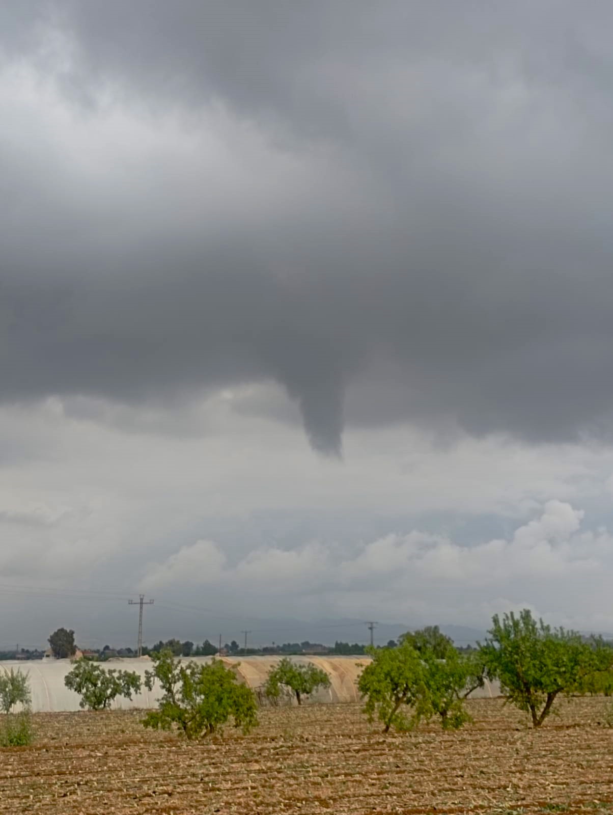 En la tarde del lunes 29 de abril de 2024 se produjo una situación de chubascos convectivos en buena parte de la Región de Murcia, estando vigente el aviso amarillo por parte de la Agencia Estatal de Meteorología ante la posibilidad de acumulados de 15 litros por metro cuadrado en 1 hora. Uno de los focos tormentosos más destacados descargó en la pedanía lorquina de La Paca, pero en general todo el término municipal de Lorca se vio afectado en mayor o menor medida por las precipitaciones, dejándose ver incluso la formación de una tuba. El testigo del evento piensa que no llegó a tocar tierra, por lo que efectivamente se trataría de una tuba y no de un tornado.
