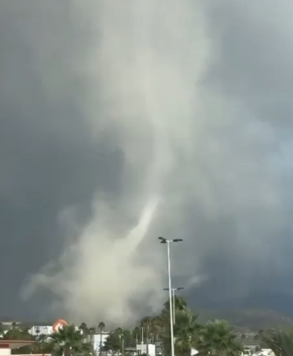 Varios usuarios de Twitter comparten vídeos donde se observa la nube embudo en aparente contacto con el suelo.