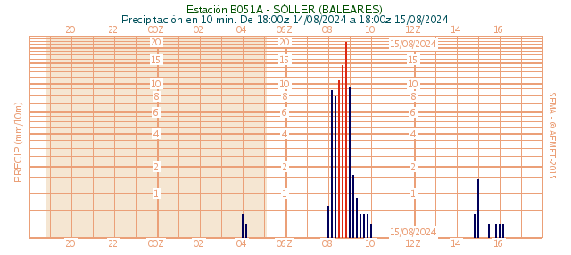 Episodio de precipitación torrencial acontecido durante la mañana del sábado 15.