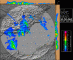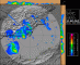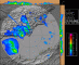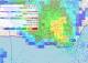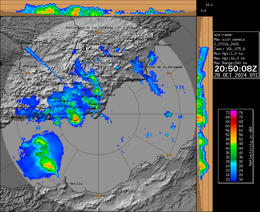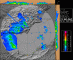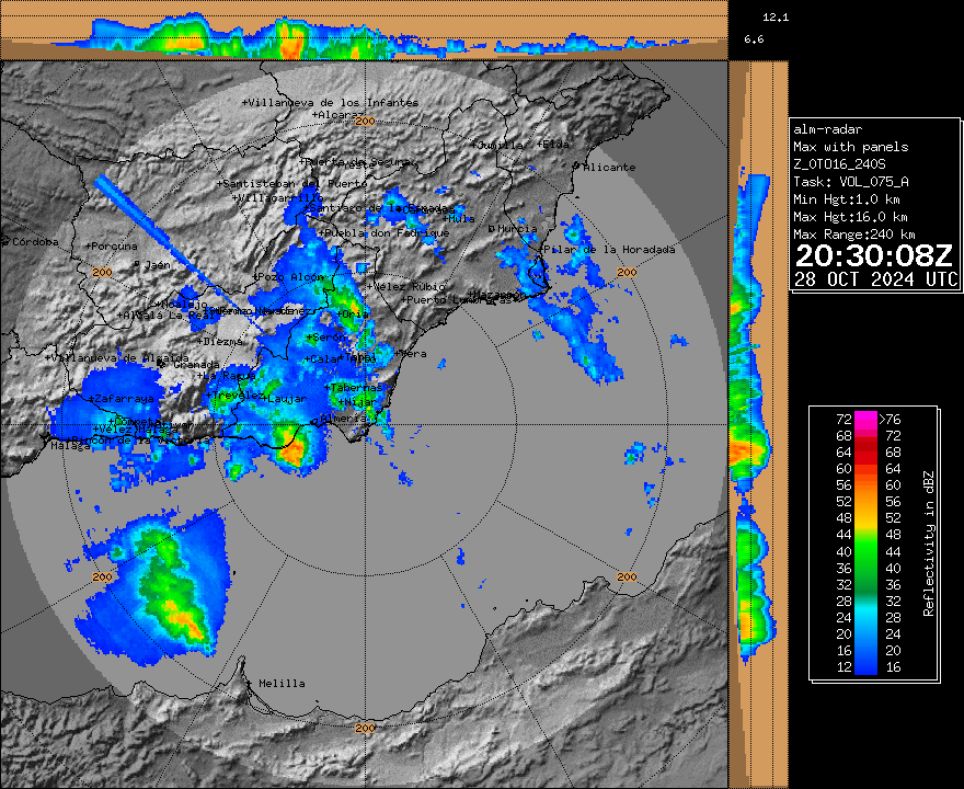 Célula muy organizada e intensa (probablemente supercelular) entrando de mar a tierra, que generó precipitación muy fuerte, rachas intensas de viento y granizo muy grande, del tamaño al menos de pelotas de ping pong