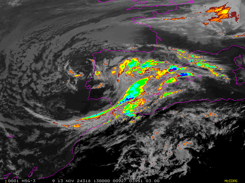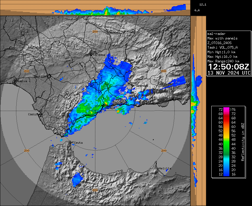Situación de depresión en altura al suroeste peninsular, flujo de SW en 850 hPa y levante intenso en superficie, generando torrencialidad
